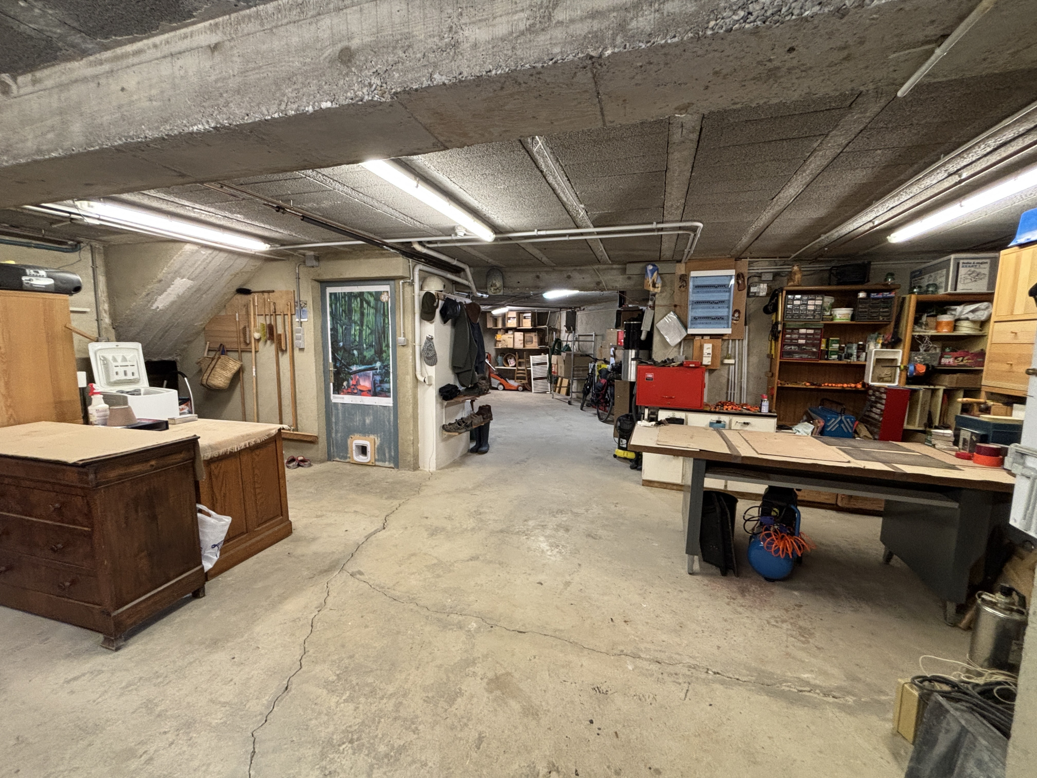 La maison offre un très grand sous-sol complet plus que agréable et utile divisé en ateliers, grand garage, pièces de rangements, chaufferie ...